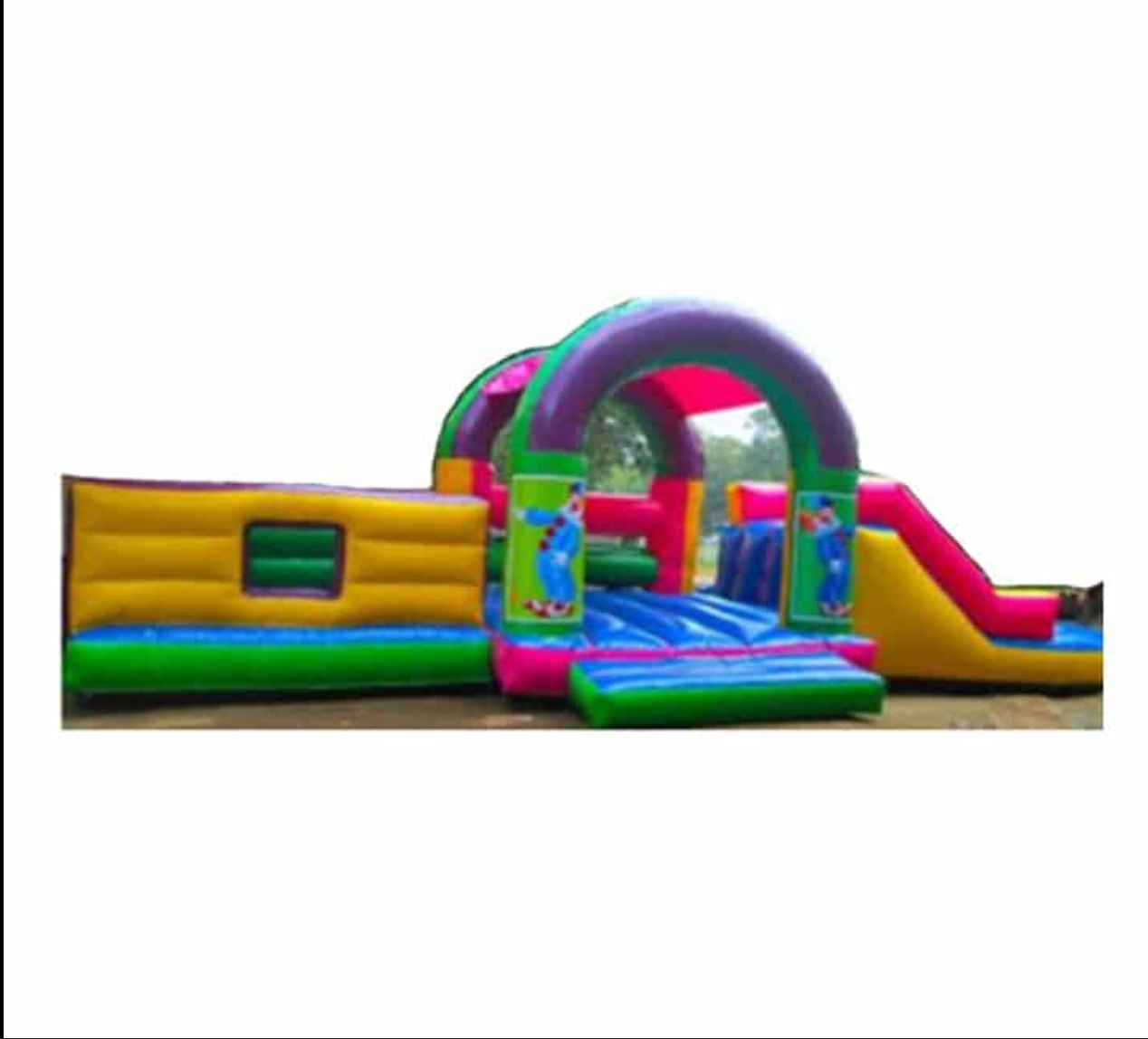 This clown-themed activity jumping castle features a bright and playful design, making it a great addition to children’s parties, school events, and outdoor gatherings. Its extended layout provides a larger bouncing and activity area for more interactive play.